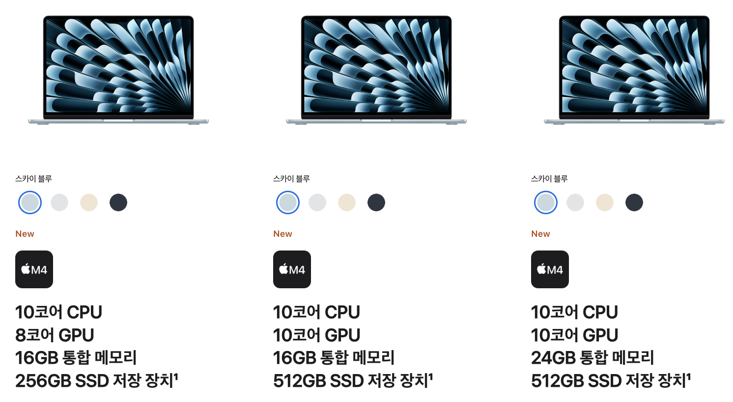 → 기존의 미드나이트, 스타라이트, 실버 색상 외에도 새로운 스카이 블루 색상이 추가되어 선택의 폭이 넓어졌습니다.